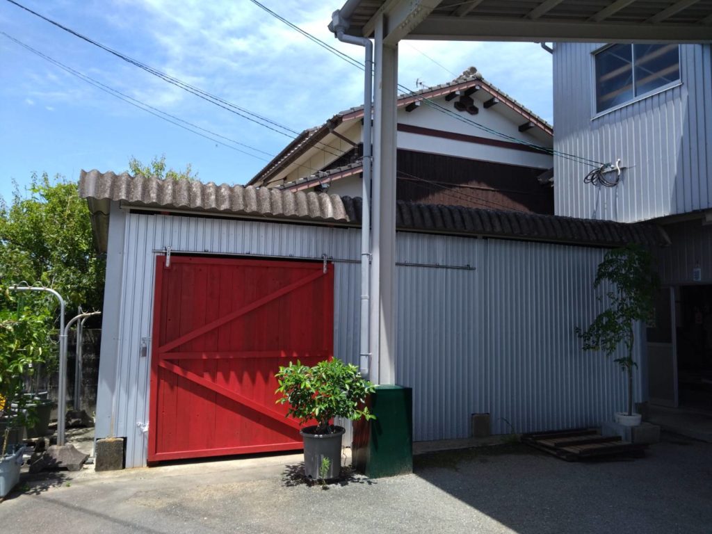 自転車置き場を倉庫兼、作業場に改造。