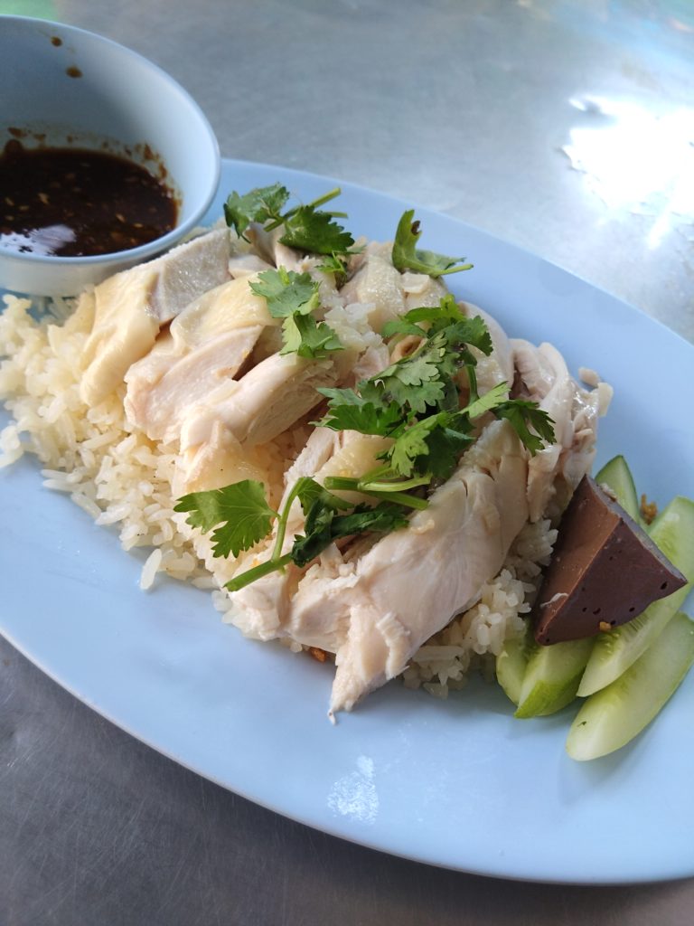 画像はタイ王国バンコク市ROMPO GYMのICE先生と本場のカオマンガイ